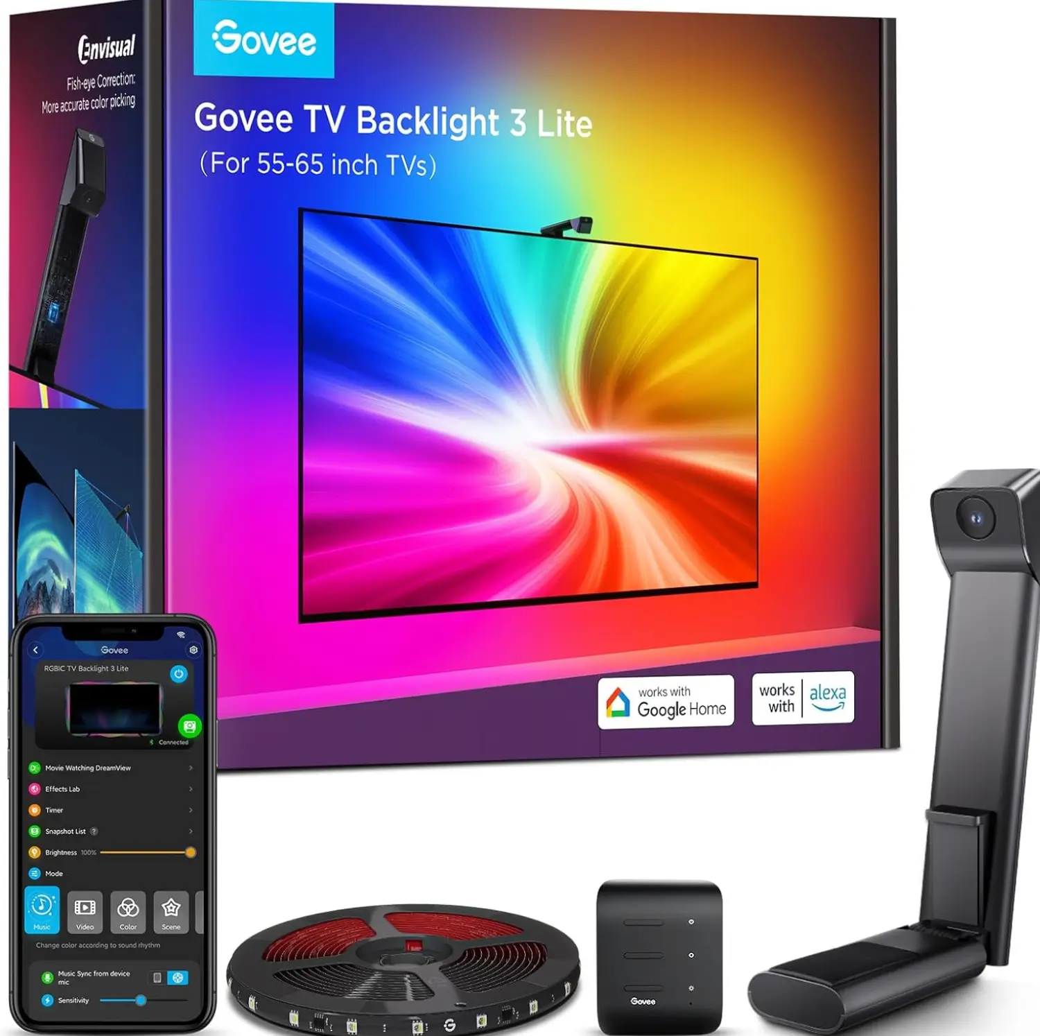 - Upgraded Govee Envisual Technology: The upgraded chip provides stronger performance with a fish-eye correction function, expanding the effective range to provide more accurate colour-matching along the edges.