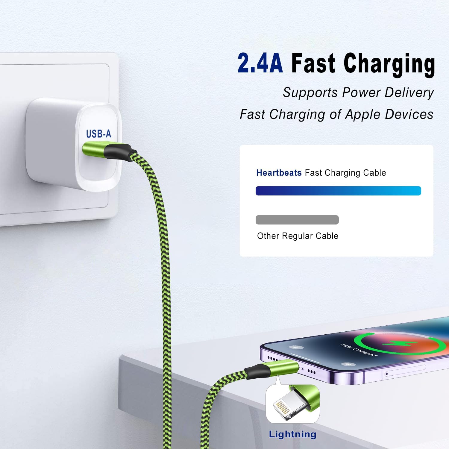 • 【Universal Compatibility】: Heartbeats Usb to Lightning Cable compatibility with iphone 14 Pro Max/ 14 Pro / 14 / 13 / 13Pro Max / 13Pro / 13mini / 12 / 12Pro Max / 12Pro / 12mini /11/11 Pro /11 Pro Max/XR / XS / XS Max / X /10/ 8 / 8 Plus /7 / 7 Plus/6s Plus / 6s / 6 Plus / 6/5s / 5 / SE/ SE 2020,Compatible with all iOS9, iOS10, iOS11, iOS12 , iOS13, iOS14 iOS15 devices.