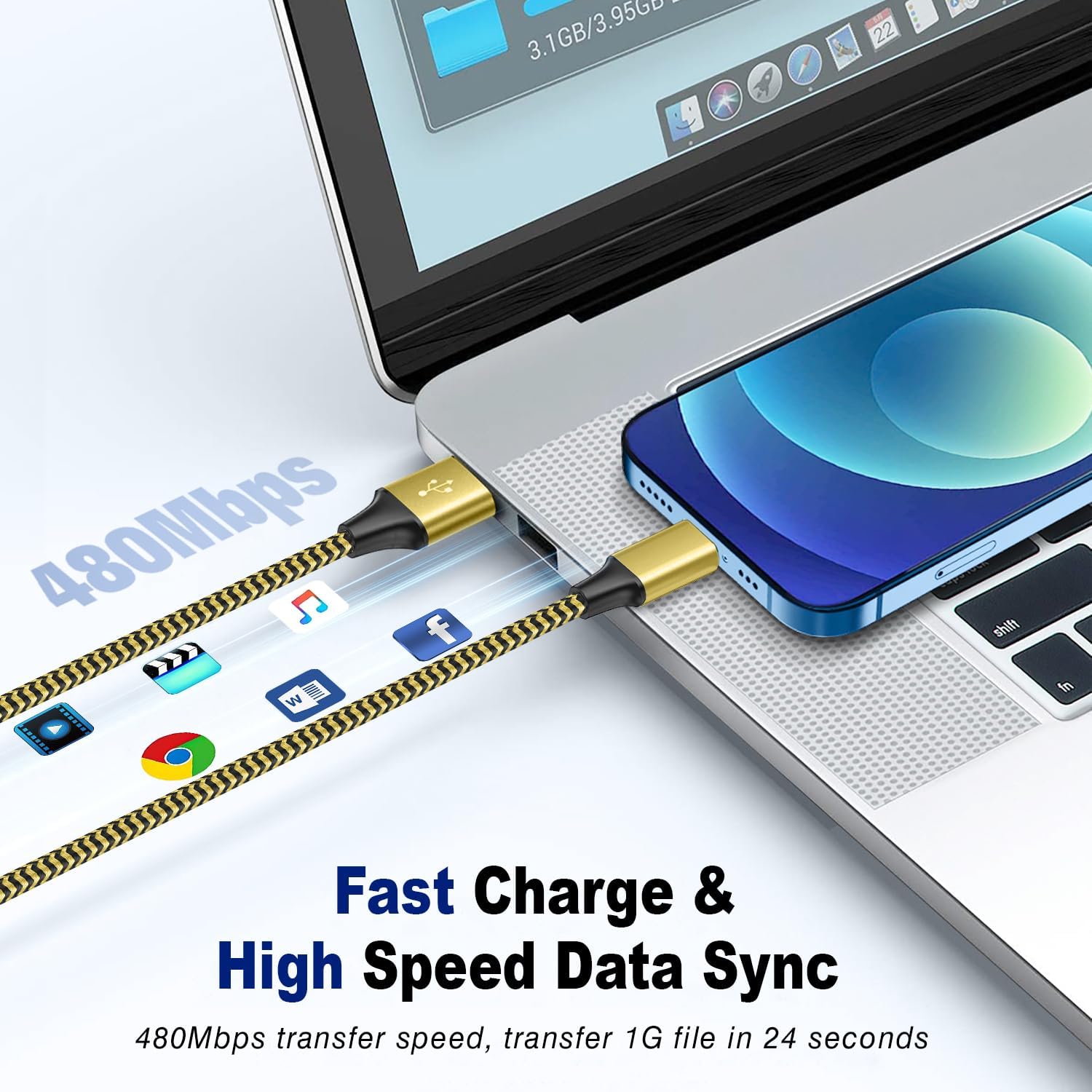 • 【2.4A Fast Charge & Sync iPhone Charger】:The new upgraded Lightning Cable supports fast charging (2.4A) and data transfer (up to 480Mbps), the charging speed and data transfer is twice as fast as the normal iPhone Cable.