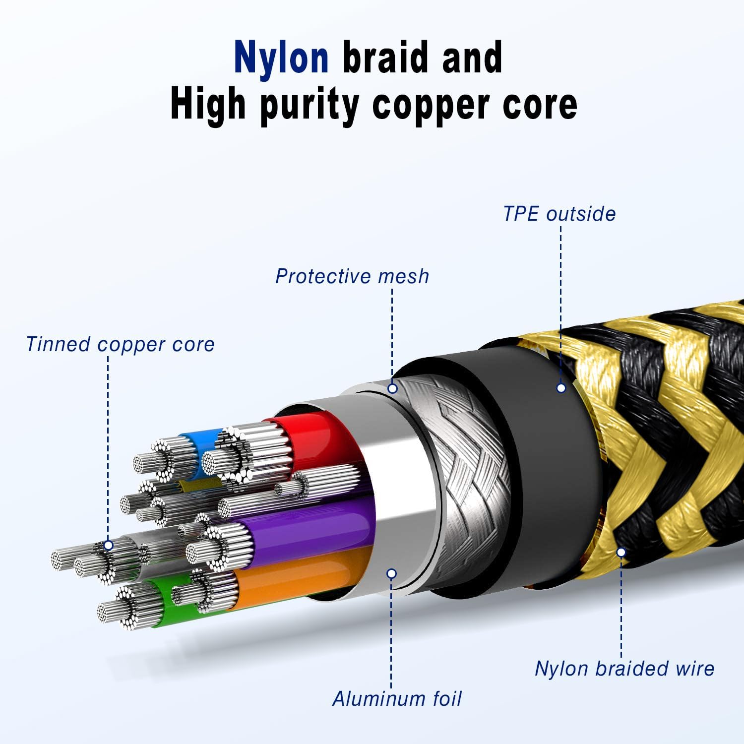• 【Super Durability And Flexibility】:The iPhone cable fast charging is made of military quality braided nylon wire wrapped around a high purity copper core and laser welded aluminum alloy technology, making the Apple Charger Cable super heat resistant and flexible.Each iPhone cable has been tested with 30000+ times bend lifespan and strong bearing capacity.