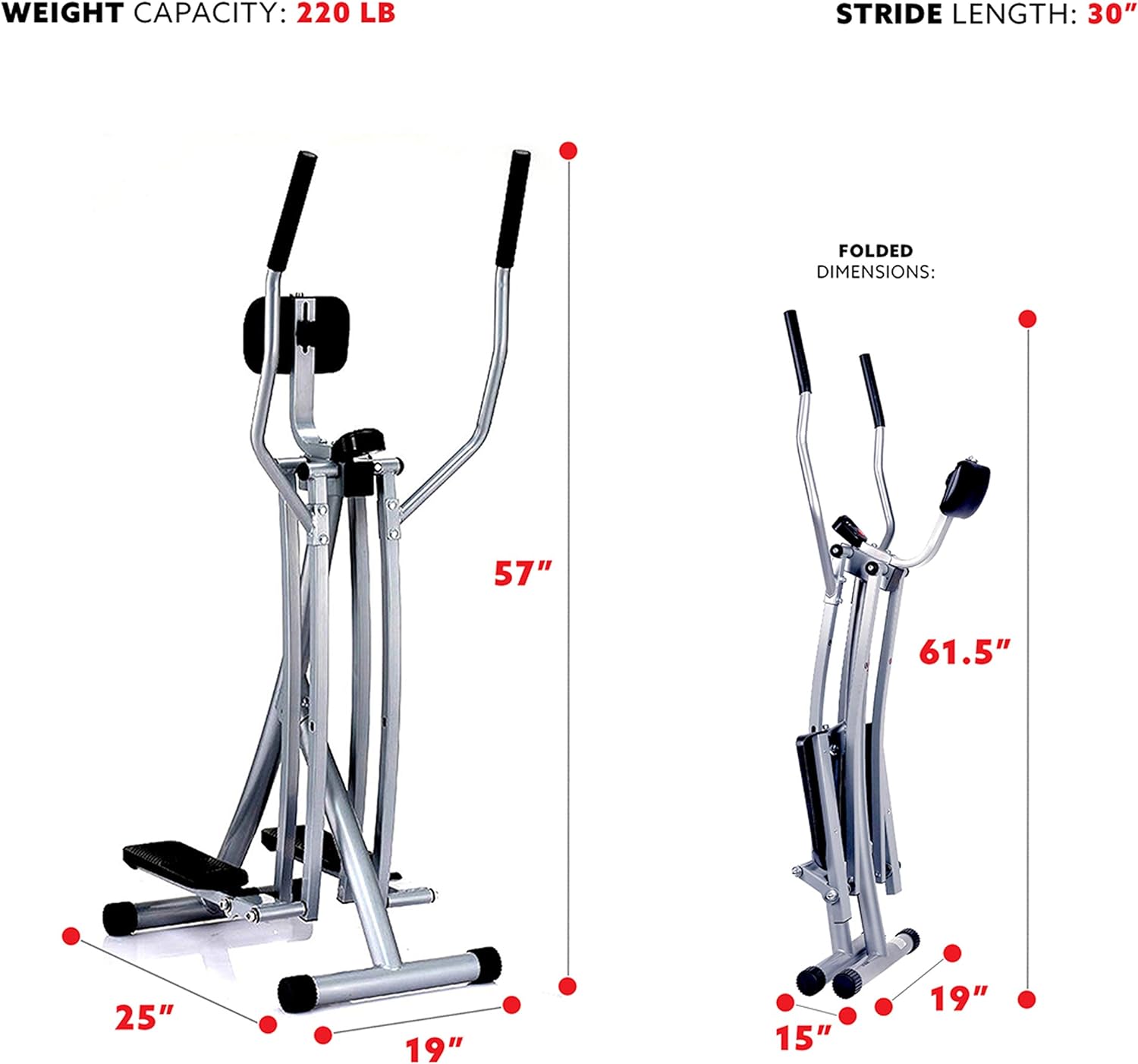 - SPACE SAVING: The compact cross trainer will take up less space and can be placed anywhere. The pedals fold up to 1/2 the length (Foldable dimensions: 38L x 48W x 156H cm).
